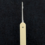 This Carbon Spring Steel Mini Ripple 3 has an Electroless Nickel Plating applied before it is molded into its strong fiber filled nylon handle. These 10-95 steel picks are robust, and this light weight plastic handle provides for an agile and responsive picking experience. You will find that the picking feedback is easily felt throughout the handle. While we always recommend our Government Steel Plastic picks (GSP) as an even stronger product, customers will find that these ENP (Electroless Nickle Plastic) based picks allow them to purchase an excellent quality pick on a budget.