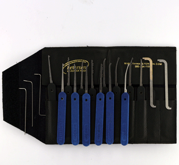 Are you the type of professional that does not need a lot, but needs the very best? If so, Peterson has the pick set for you! We constructed our Fourteen Piece Government Steel Pick Set based on what our many satisfied customers voted the most popular tools. Here are the 14 top choices, all in our famous Government Steel, proudly displayed in a top-shelf calfskin case. In addition to your favorite picks this gold-medal set contains our Serrated Tension Tools, both Peterson Pry Bars, a Saw Tooth Extractor and our Slender Picks for paracentric key ways. Get the best of the best with this new set designed by Peterson and You!